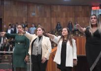 • La presidenta de la Mesa Directiva, diputada Naomi Edith Gómez Santos, y el secretario de la Comisión de Procuración de Justicia, diputado Adrián Ávila Estrada, atestiguan este acto.