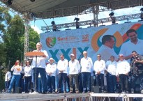 Rocío Nahle y Javier Gómez Cazarín arropan a Sheinbaum en el zócalo