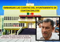 El Gobierno de Coatzacoalcos sufre un embargo judicial de sus cuentas bancarias, hay casi 200 mil pesos congelados de sus participaciones federales y estatales / por…
