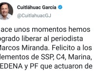 El Gobernador de Verecaruz, Cuitláhuac García, informó esta madrugada que fue liberado el periodista Marcos Miranda, director del portal Noticias a Tiempo, en Veracruz, quien…