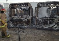 Se consumieron en llamas 47 camiones del sistema Transbus que se encontraban estacionados en su base en la colonia Miguel Hidalgo de Villahermosa. Proteccion civil informo…