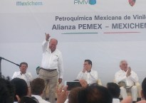 El director general de Pemex, Emilio Lozoya; el presidente del corporativo de Mexichem, Antonio Valle, oficializan la alianza para producir cloruro de vinilo: ahora Pajaritos se…