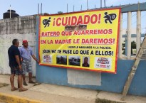 Amenazan con linchar a los ladrones en caso sean sorprendidos robando; ya instalaron una lona de advertencia ( avance informativo) Coatzacoalcos, Ver.- Con palas, tubos y machetes…